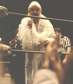 had a definite "edge" to it that the WWF lacked. Even as a twelve-year-old, I was a bit put off by the cartoonish feeling that WWF storylines were beginning to take. Somehow, we were lucky enough to consistently get near front row seats for the NWA. I immediately became a fan of some of the "bad guys." I always thought chanting USA and rooting for the "superhero" type was a bit hokie. I liked the guys who would make their opponent bleed and curse at the crowd-NOW THAT'S FUN!! |